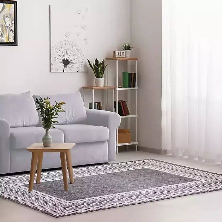 Refresh anywhere from your sunroom to your patio using this Charcoal Linear Macy Indoor/Outdoor Area Rug. Featuring contrasting hues and multiple border patterns, this rug makes a bold statement in any lounge space!