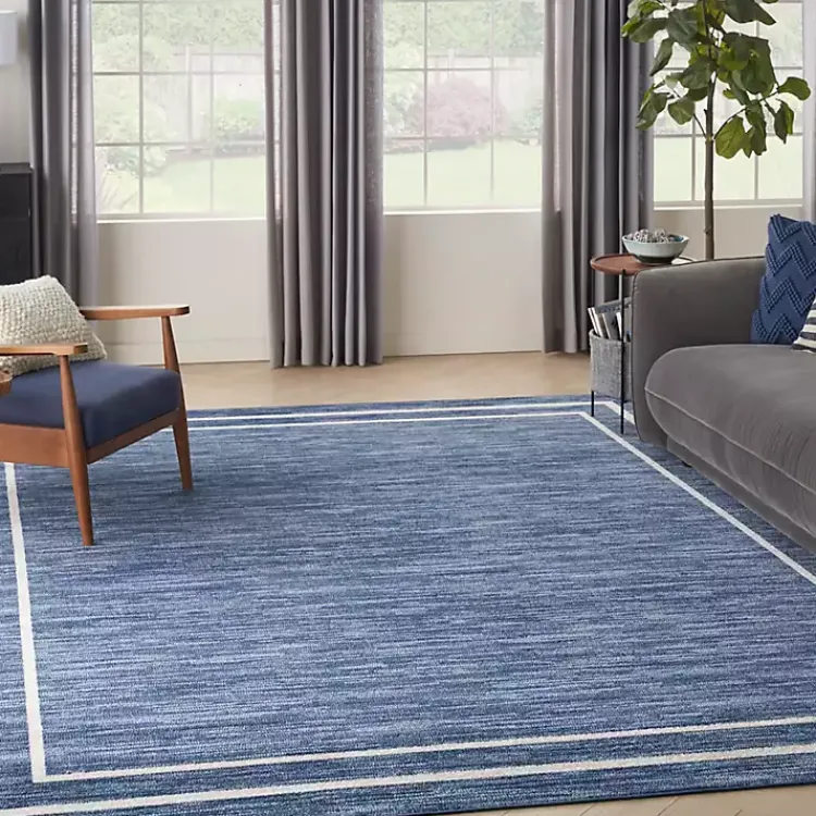 Complete your porch, patio, or family room with this Navy Bordered Indoor/Outdoor Area Rug. Its simple style will effortlessly add texture and definition to your space!