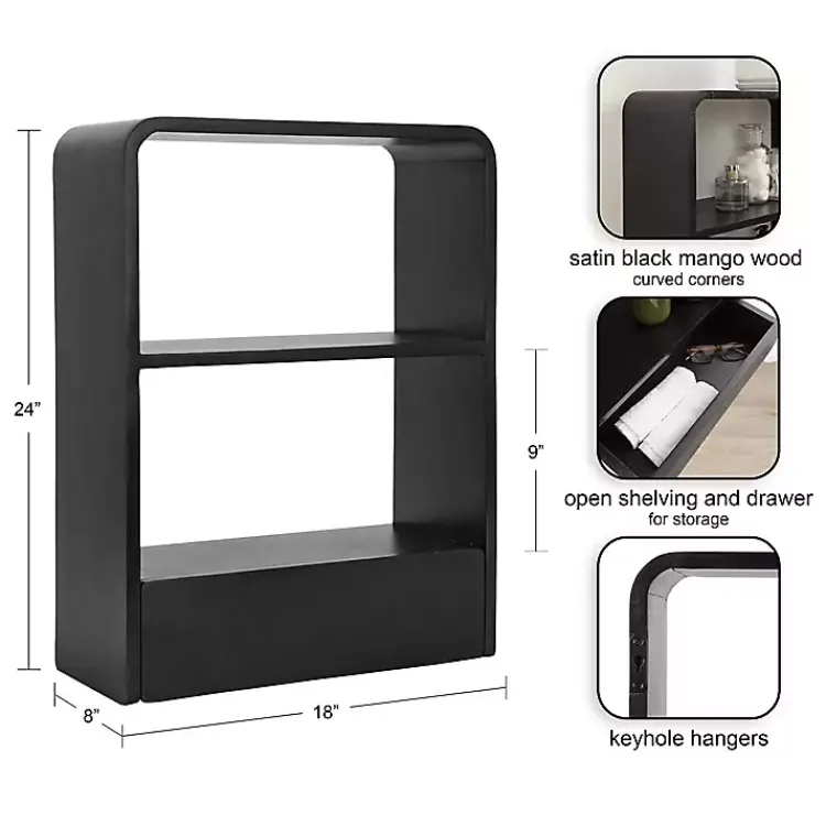 Storage and style meet in this Black Kato Single Drawer Wall Shelf. Its smooth, curved lines will update any wall, while its shelves and drawer provide plenty of storage space!