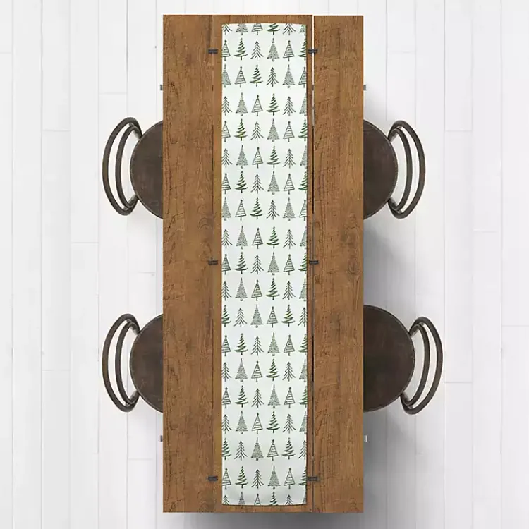 Set your Christmas table with this Green Christmas Tree Table Runner. Rows of unique Christmas trees decorate this white cotton and twill table runner.