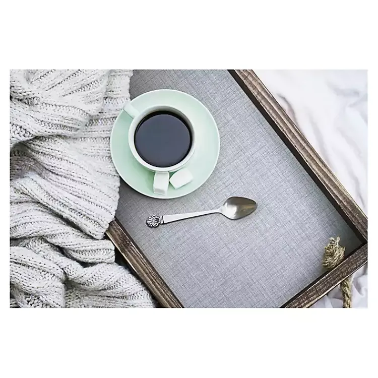 - Features a textured faux linen design