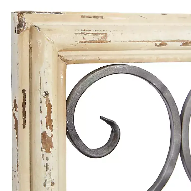 - Distressed white wood frame finish