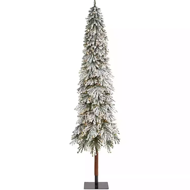 This 9 ft. Lit Flocked Grand Alpine Christmas Tree makes it easy to get into the holiday spirit with its snowy branches and woodsy design! Even Santa will love putting gifts under this evergreen.