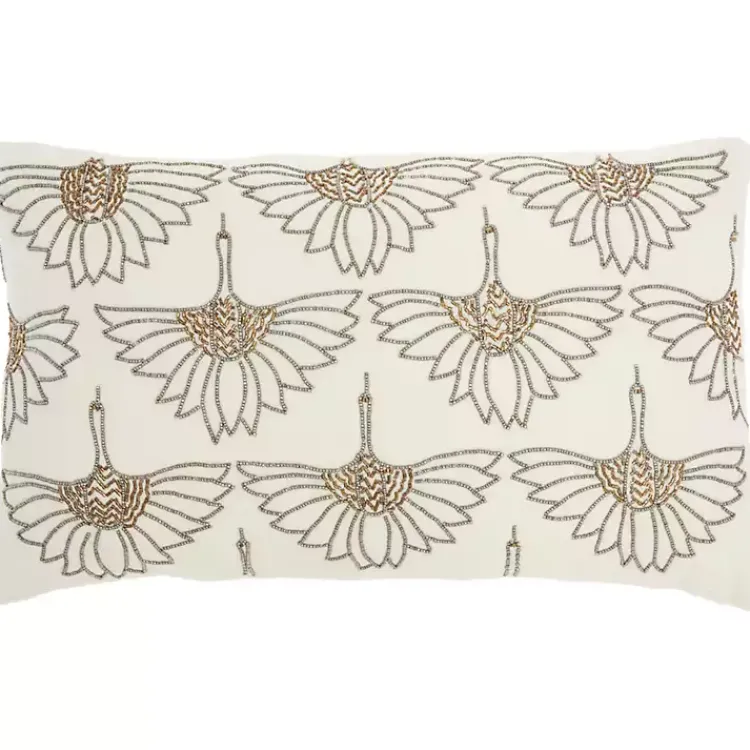 The Ivory Beaded Floral Motif Lumbar Pillow gorgeously balances modern glam and art decor allure. Detailed with gold and silver beading, the delicate flower designs are captivating to the eye.