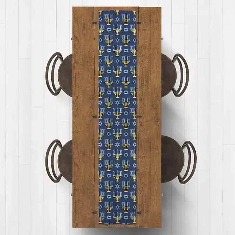 Get your table ready for Hanukkah with this Blue Menorah Table Runner. Its beautiful, vibrant design will add a fun charm to all your seasonal parties and meals!