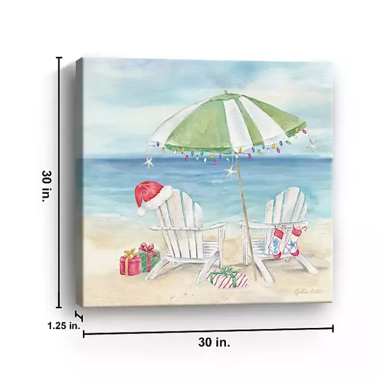 Take a break from the cold and snow with this Christmas on the Beach Canvas Art Print. It will put a fun, coastal embellishment on your seasonal decor!