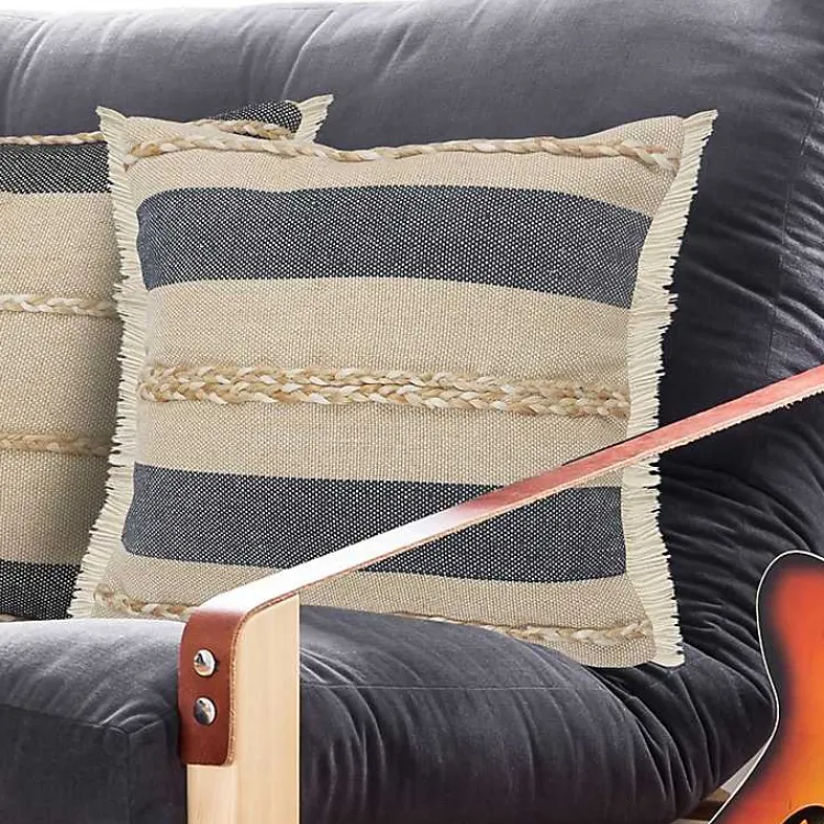 Add a natural touch to your sofa or chase with this Denim Blue Braided Stripe Throw Pillow! You’ll love the way the earthy jute texture accents any style or decor..