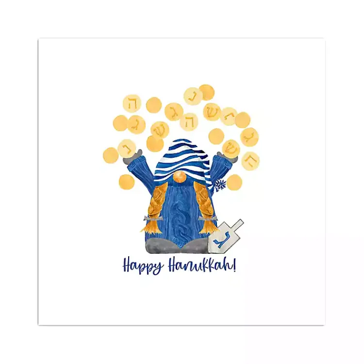 Add some adorable Hanukkah charm to any wall with this Dreidel Gelt Game Gnome Canvas Art Print! Featuring a sweet subject playing a traditional game, this piece is perfect for the holiday.