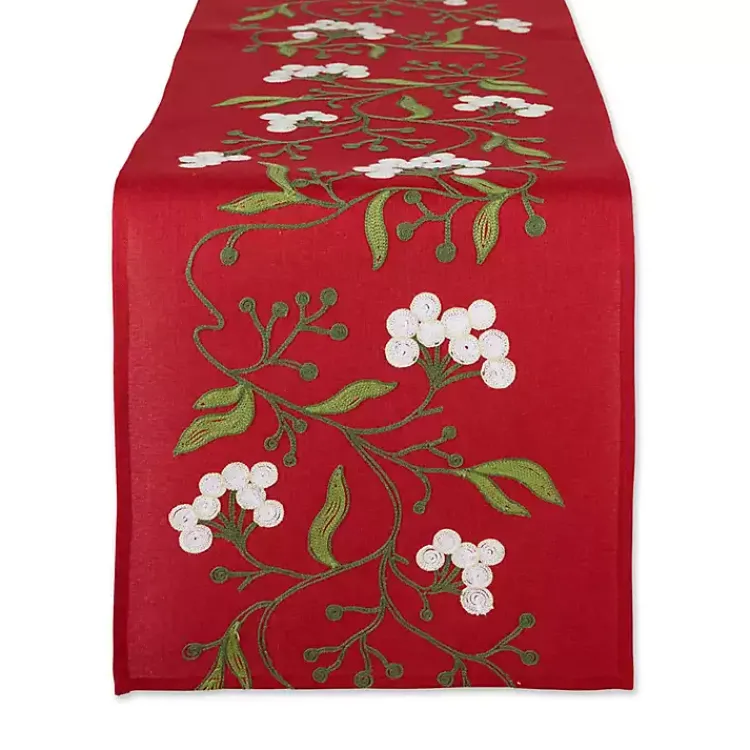 Create a holiday tablescape to remember with this Embroidered Mistletoe Christmas Table Runner. Its rich, intricate embroidery and bold colors will give your dining table a festive, elegant makeover.