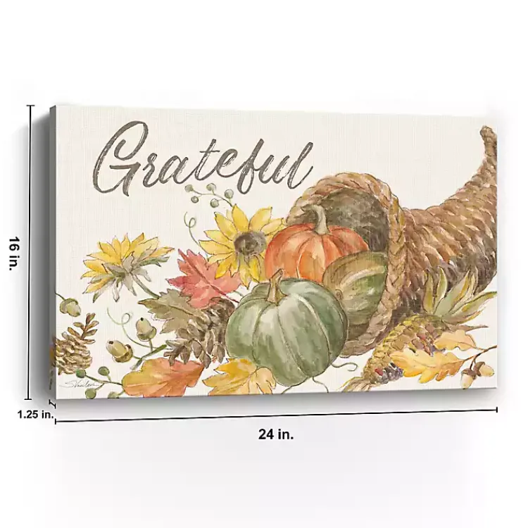 Crisp air, autumn leaves, and a chill in the air – who doesn’t love fall? Decorate for the coziest season with the Grateful Cornucopia Harvest Canvas Wall Plaque.