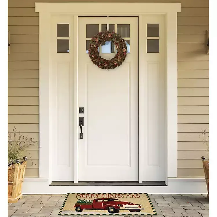 Prepare your porch for the most wonderful time of the year with our adorable Red Truck Merry Christmas Tree Doormat! All of your guests will love seeing this joyful decoration.