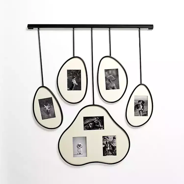 Display cherished memories with your furry friends with this Black and White Paw Print Collage Frame. Its adorable design will add a fun flair to any wall!