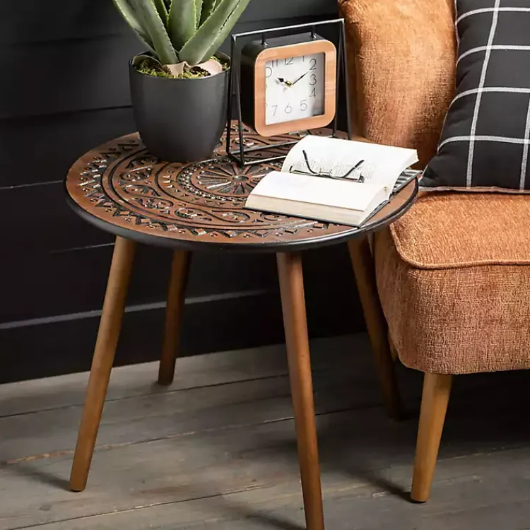 The Black Metal Floating Frame Tabletop Clock will make a stylish accent to any desk or shelf display. Its two tone finish, rounded square shape, and unique frame blend into a modern design.