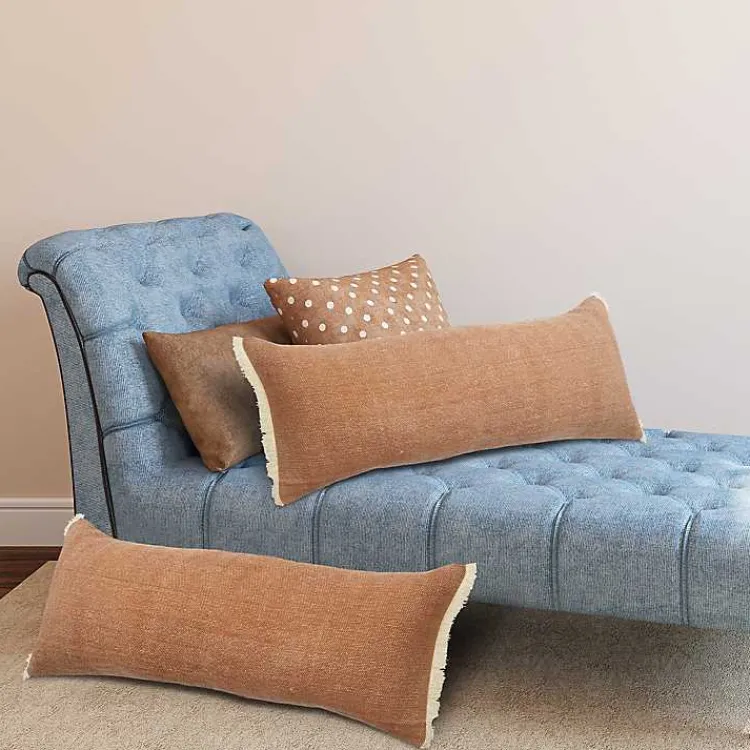Create a cozy oasis with our Caramel Coated Lumbar Accent Pillow with Fringe! Place this pillow on your chairs, bench, or couches where you need some extra back support.