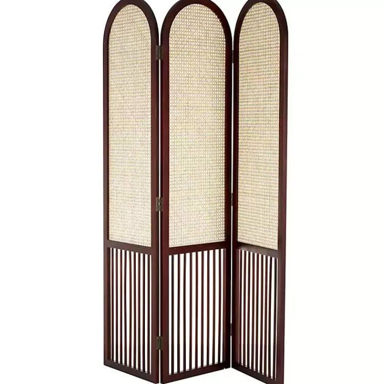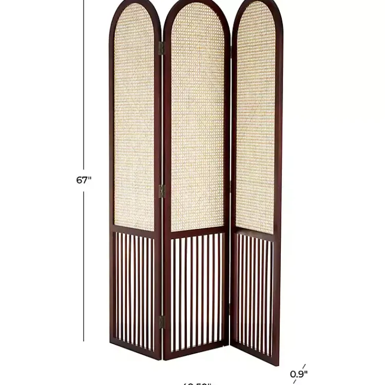 Maximize your space with this Dark Wood & Rattan Arched Trifold Room Divider! This practical divider features stylish details for a functional yet chic addition to your home.