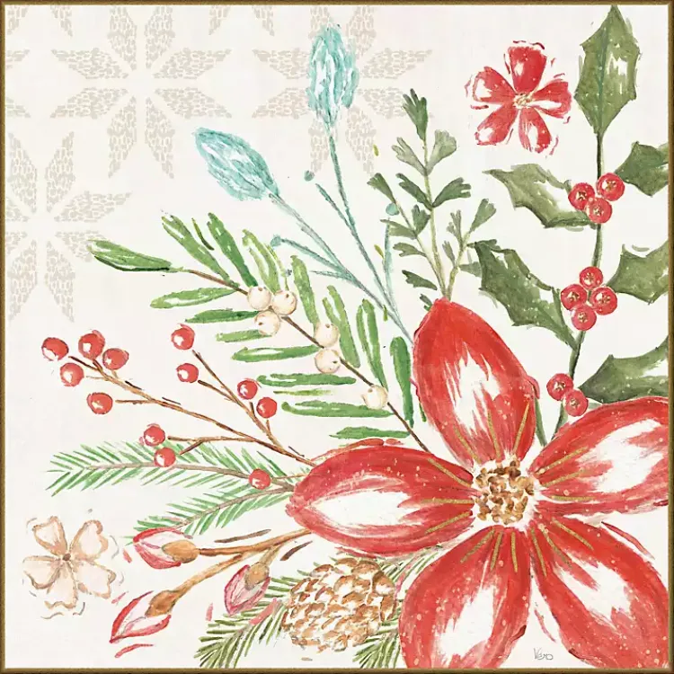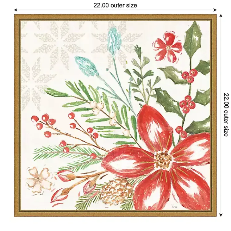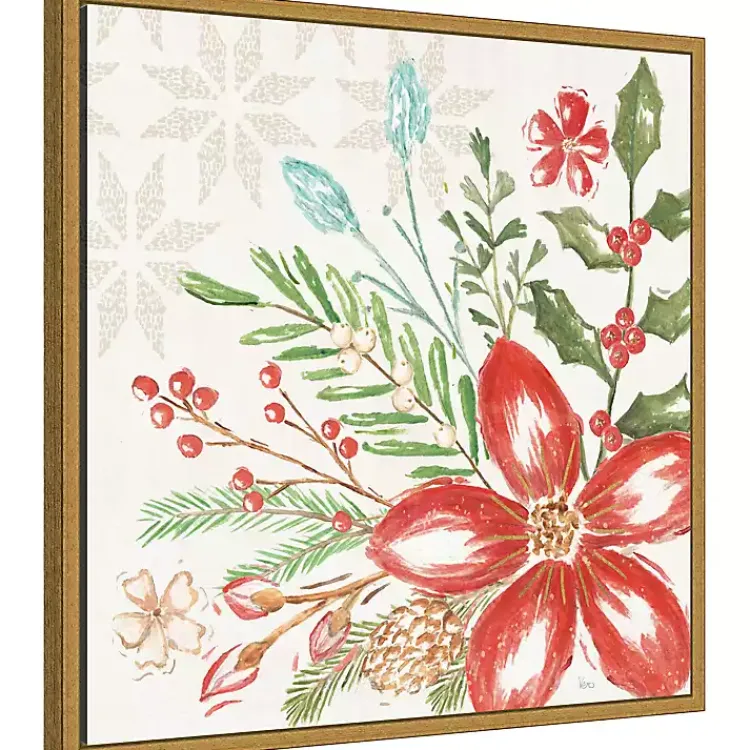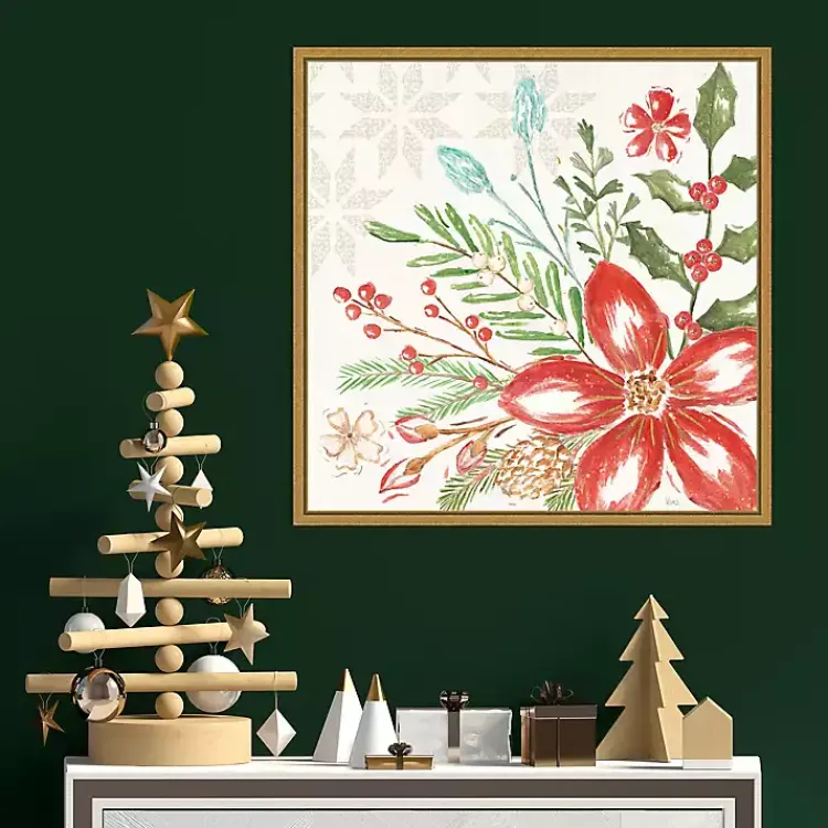 This Elegant Poinsettia Framed Canvas Art Print will bring your walls to life with a bright floral arrangement. Its beautiful design and golden frame will fill any room with holiday cheer!