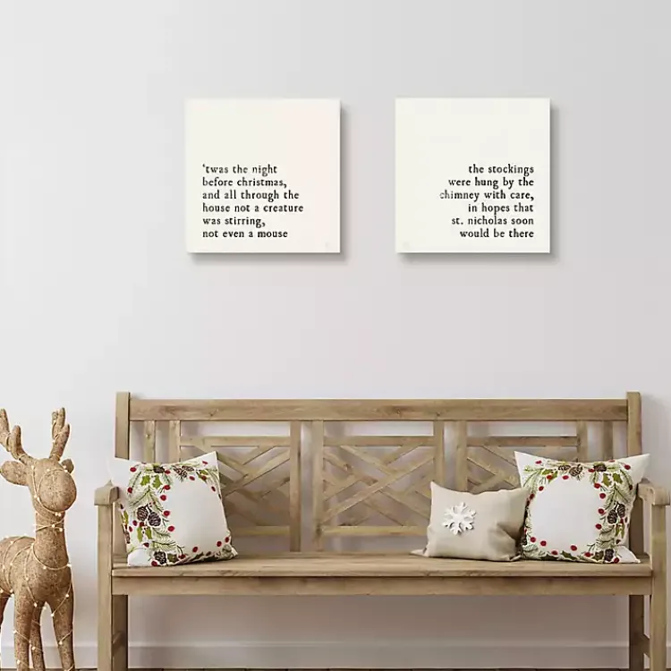 Decorate your home with the first few lines of your favorite Christmas poem! The set of Ivory Christmas Quote Canvas Art Prints will look lovely near your Christmas tree or reading nook.