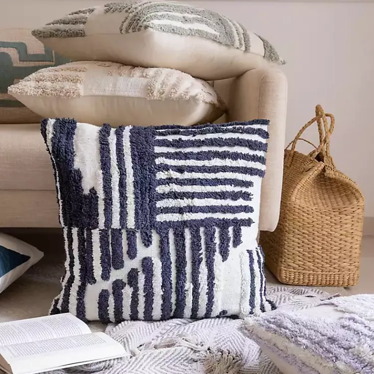 Add a true designer’s touch to your home with our Navy Blue Geometric Shag Throw Pillow! Featuring a bold color and a tufted cotton shag in an abstract design, no detail has been overlooked with this stunning decorative throw pillow.