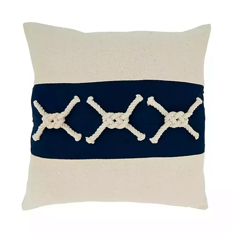 Decorate your space with a nautical cottage look! This Navy Blue Rope Knots Throw Pillow features rope knot accents for a coastal design that you’ll love in your home this summer!