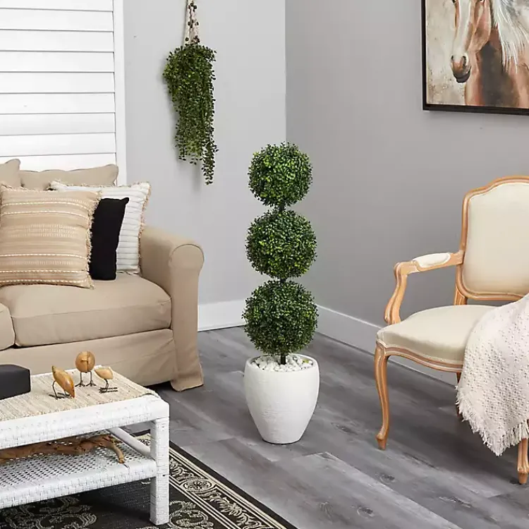 With our Outdoor Ball Boxwood Topiary in White Planter, luxurious has never been so effortless! You’ll love that this patio-safe look doesn’t require any watering or upkeep.
