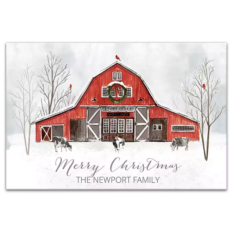 The Personalized Red Holiday Barn Canvas Art Print will bring fresh farm beauty into your home. Finished with your family name, it’s sure to create a festive and inviting feeling!
