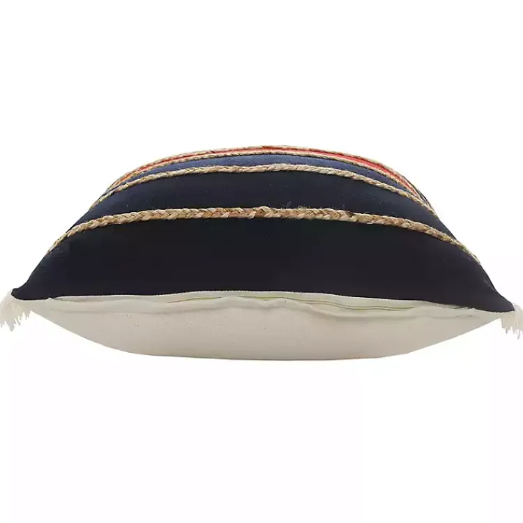This Red & Navy Nautical Rope Throw Pillow features a blue and red striped design and textured jute braiding. It’s a wonderful accent for the nautical or Americana home!