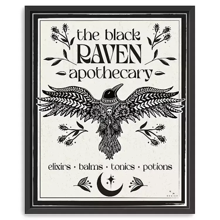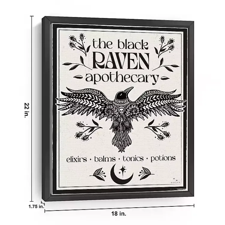 Bring a witchy look to your Halloween décor with this The Black Raven Apothecary Framed Canvas Art Print! It might just inspire you to concoct a few elixirs and potions!
