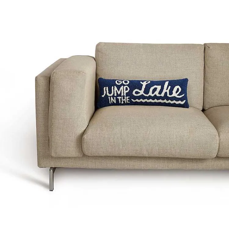 Bring a decorative look to your space with our Blue Go Jump in the Lake Hooked Lumbar Pillow! You’ll love this accent pillow in your lake house or cabin!
