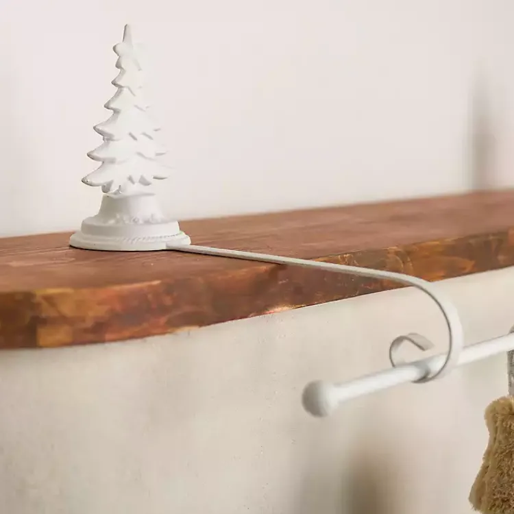 Hang stockings with style with our White Bar Christmas Tree Stocking Holder! The white Christmas tree accents give this stocking holder an elegant, sophisticated look that you will love using this Christmas!