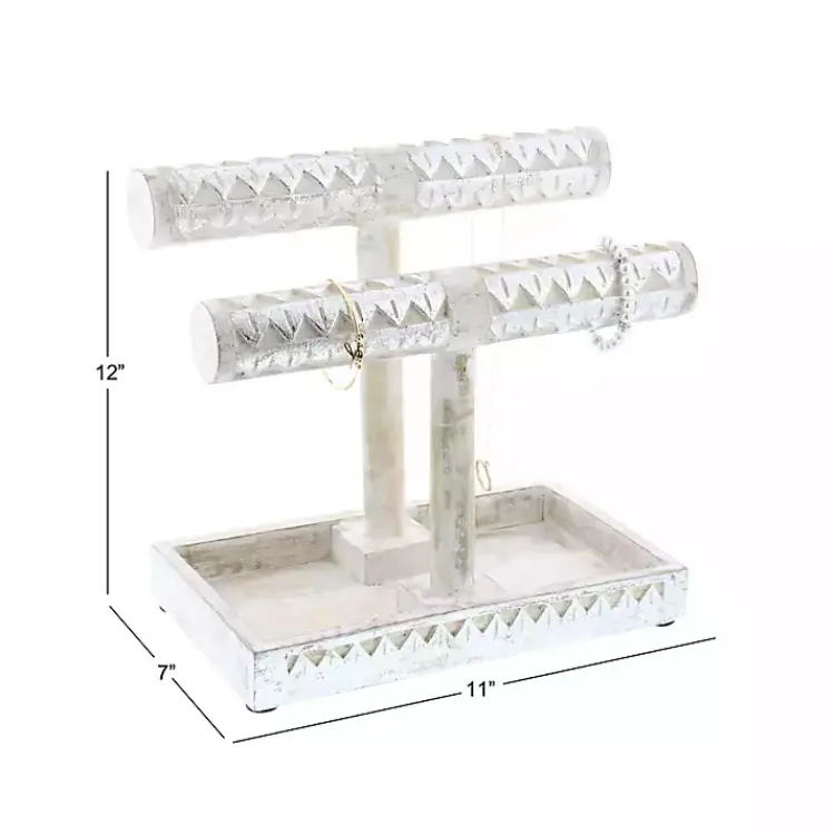 Store your jewelry with style with this Distressed Silver Wood Jewelry Stand. Its beautiful and functional design will help keep all your jewelry organized and in one place.