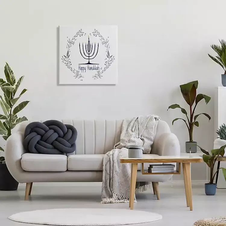 Celebrate the season with this Happy Hanukkah Wreath Canvas Art Print. Featuring a lovely design, this piece will put the perfect festive accent on your walls!