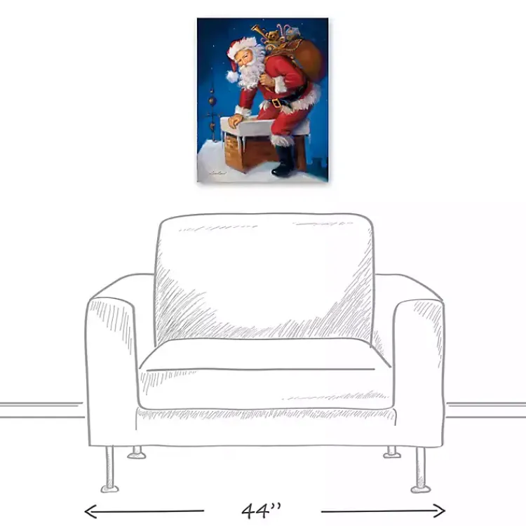 Carrying a sack full of toys, Santa Claus is ready to slide down the chimney! The Here Comes Santa Canvas Art Print will evoke a classic, nostalgic feeling in your home this Christmas.