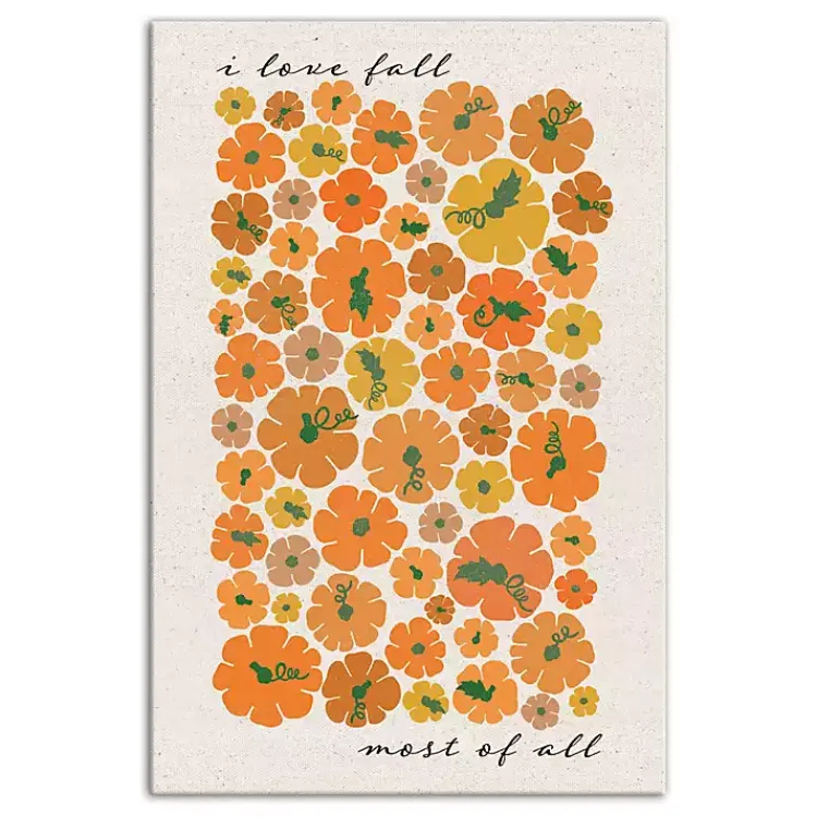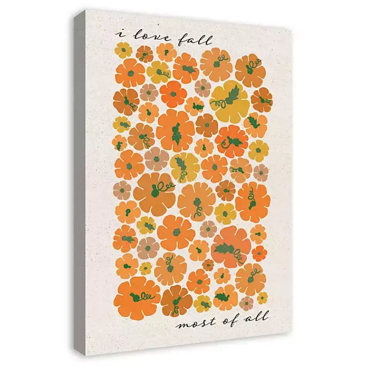 With its pretty pumpkin pattern, this Love Fall Most of All Pumpkins Canvas Art Print puts a modern twist on seasonal decor. You’ll love the festive flair it adds to your walls!