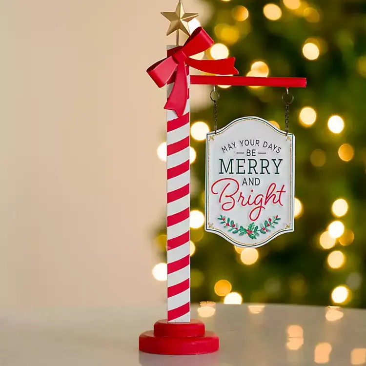Bring a bit of the North Pole into your home with our Merry and Bright Post Tabletop Sign! This cute decoration will add a sentimental touch to your Christmas village display.
