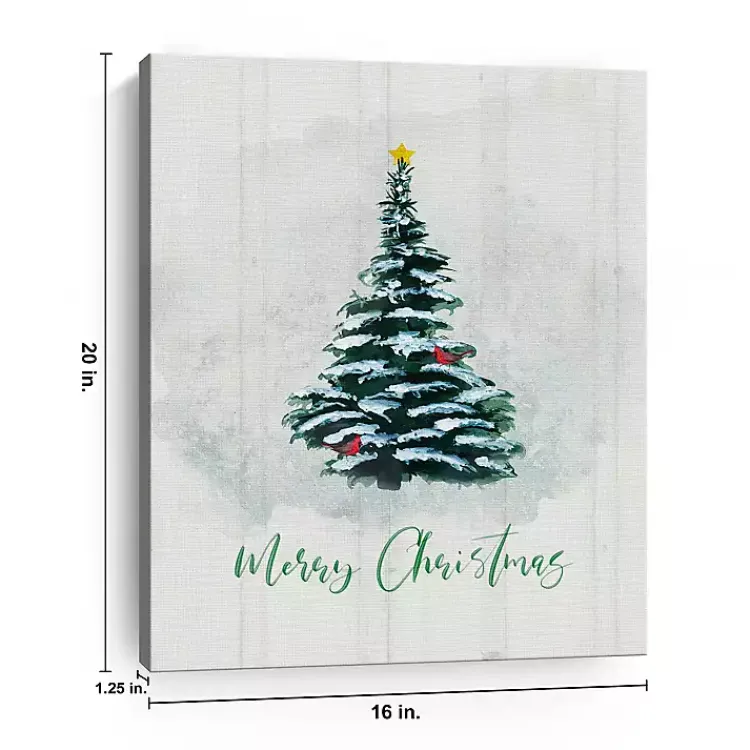 Spread the holiday cheer to any room in your home with this Merry Christmas Winter Pine Canvas Print. Its snowy tree will keep your space merry and bright!