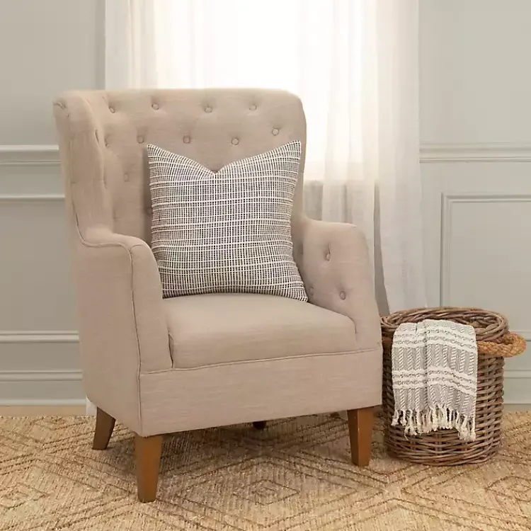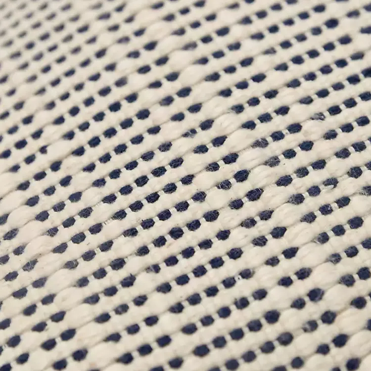 The Navy and Natural Sea Striped Pillow features a woven design that will complement any interior style. Its two-color yarn dyed weave brings a chic appeal to any seating area.