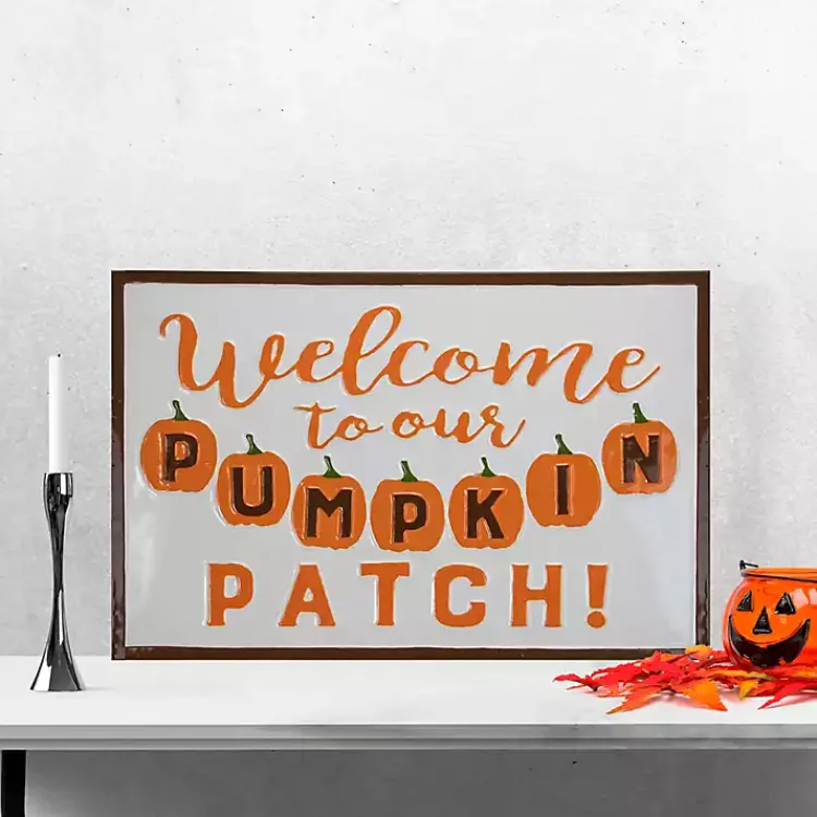 Give friends and family a warm welcome with this Our Pumpkin Patch Metal Wall Plaque. It’s adorable design will put a festive touch on your walls this fall!