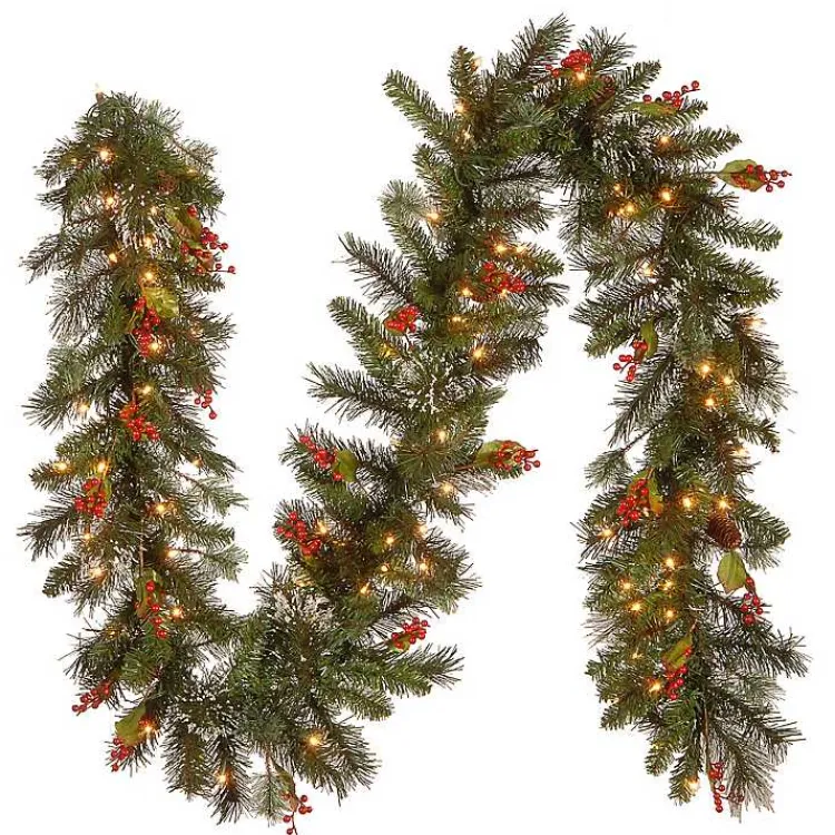 Transform your home for the winter holidays with this Pre-Lit Wintry Pine Christmas Garland! Designed with a Wintry Pine branch base, this garland is decorated with snow-dusted pinecones and berry clusters.