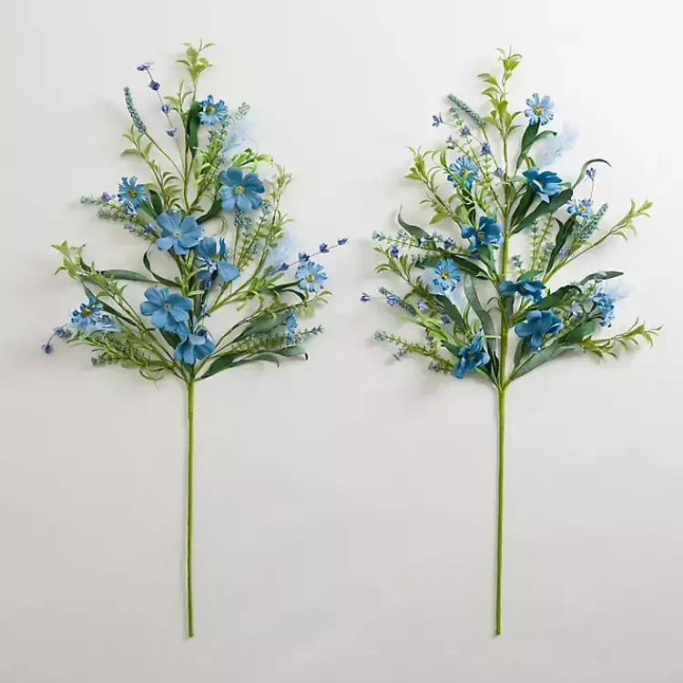The set of Blue Spring Flower Stems will refresh your space with effortless charm. Spruce up any ceramic vase with these blooming flowers and delicate greenery.