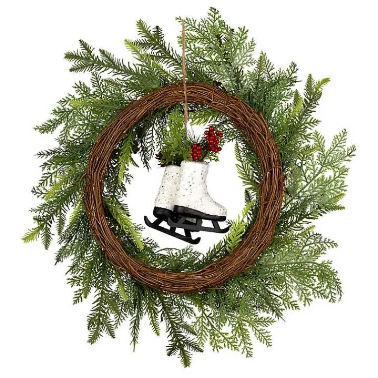 Create Christmas memories with this charming Winter Skates Christmas Wreath with Red Berries! This wreath is crafted with green branches and accented with red berries and white ice skates.