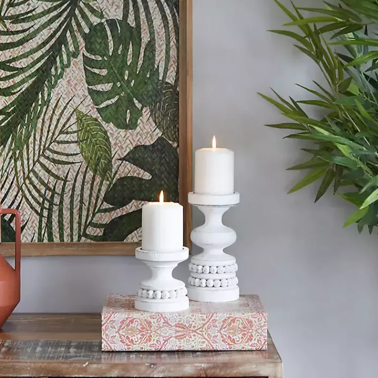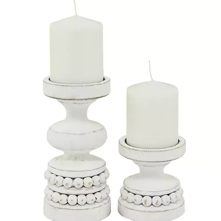 Our White Wood Beaded Pillar Candle Holders are perfect accent pieces for a modern farmhouse-style home! The distressed whitewash and beaded features give these holders a rustic charm that you’ll love for your candles!