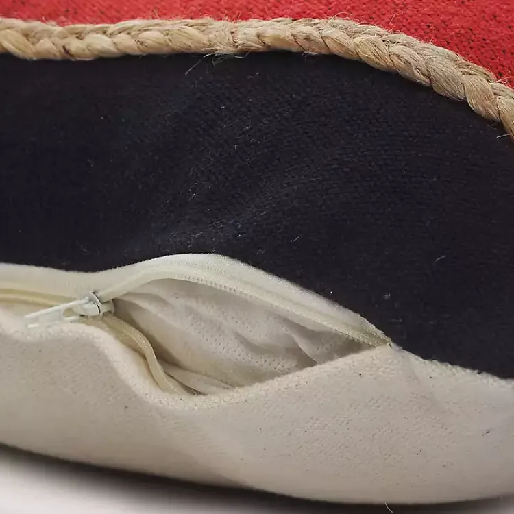 This Red & Navy Nautical Rope Throw Pillow features a blue and red striped design and textured jute braiding. It’s a wonderful accent for the nautical or Americana home!
