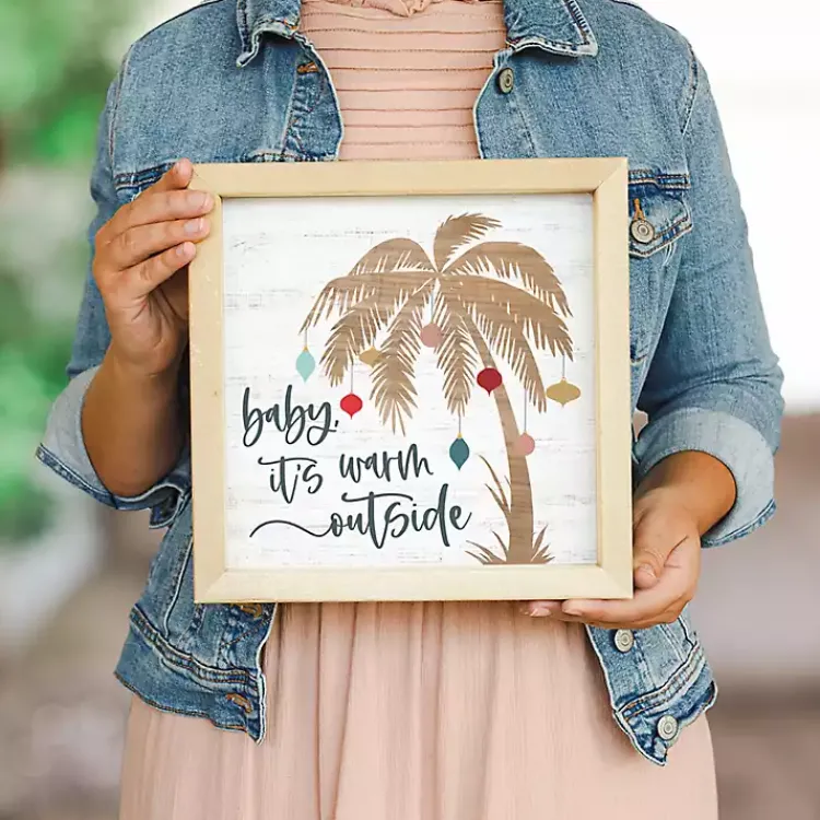 Take Christmas to the coast with this Baby It’s Warm Outside Wall Plaque. Decorated with ornaments, the palm tree will put a fun twist on your holiday decor!