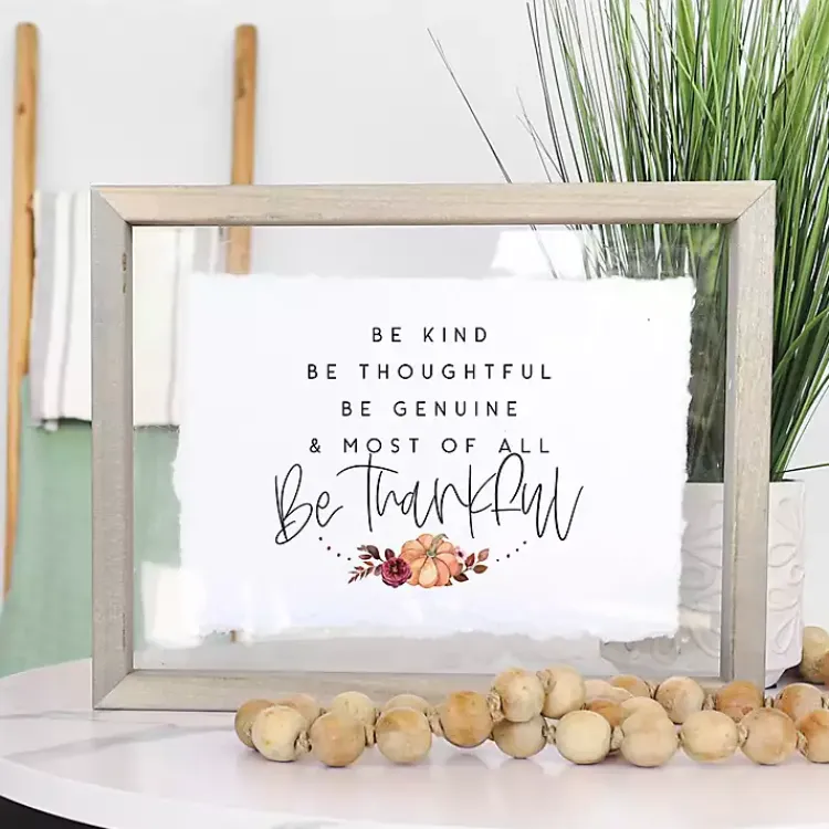 Refresh your walls for the season with this Be Thankful Framed Wall Plaque. Its endearing phrase and pumpkin accent make the perfect accent for Thanksgiving!