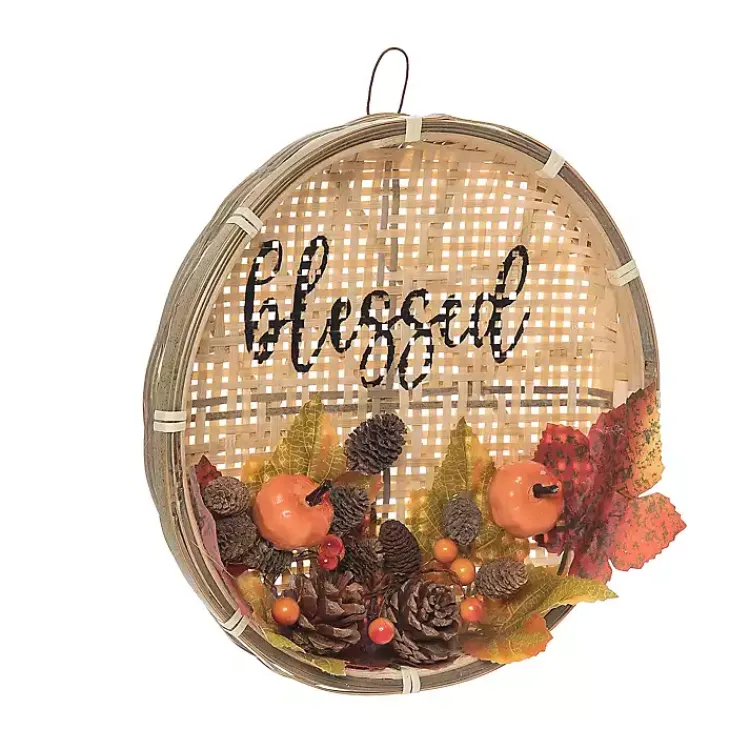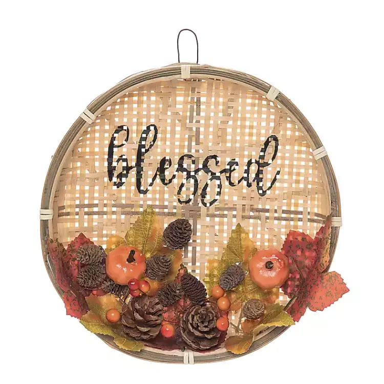 The Blessed Basket Harvest Wreath Wall Plaque will make a lovely centerpiece for your fall display! The faux foliage and natural, woven textures will stand out on any wall or door.