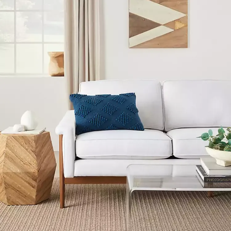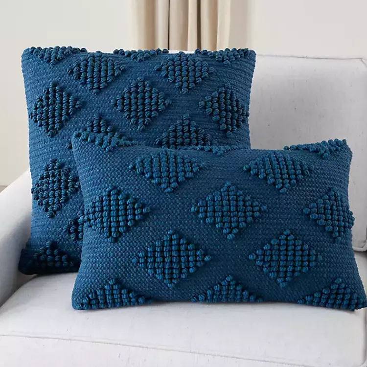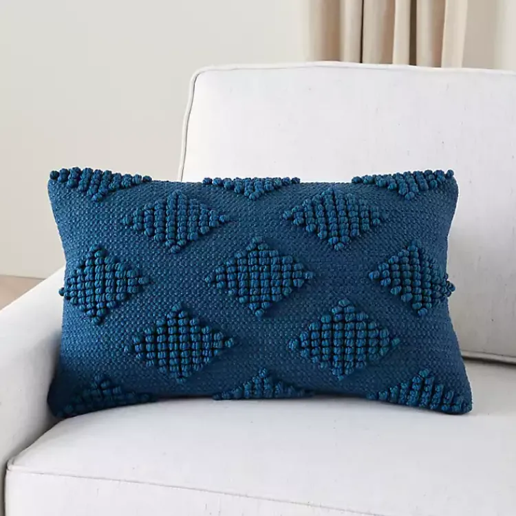 Refresh your space with a chic, sophisticated touch with our Navy Blue Woven Diamonds Lumbar Pillow! This textured pillow will effortlessly update your living room or bedroom with style!