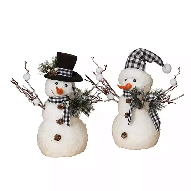 Complete your winter wonderland with these Plaid Scarf Snowman Statues. Their cute style and festive accents will add a sweet, whimsical touch to any space!
