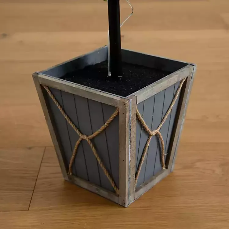 From the porch to your living room, add a touch of lush greenery to any space with this Pre-Lit Triple Boxwood Topiary in Planter. Its twinkle lights will brighten your home with a soft glow!