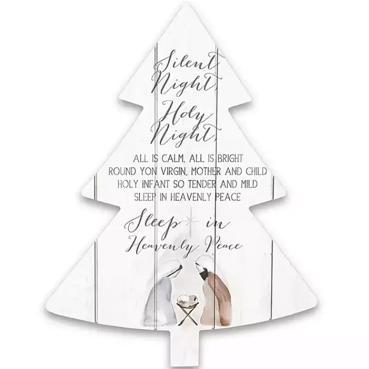 Spread peace and joy throughout your home with this White Silent Night Christmas Tree Wall Plaque. The lyrics from the beautiful hymn will create a calm and holy feeling.