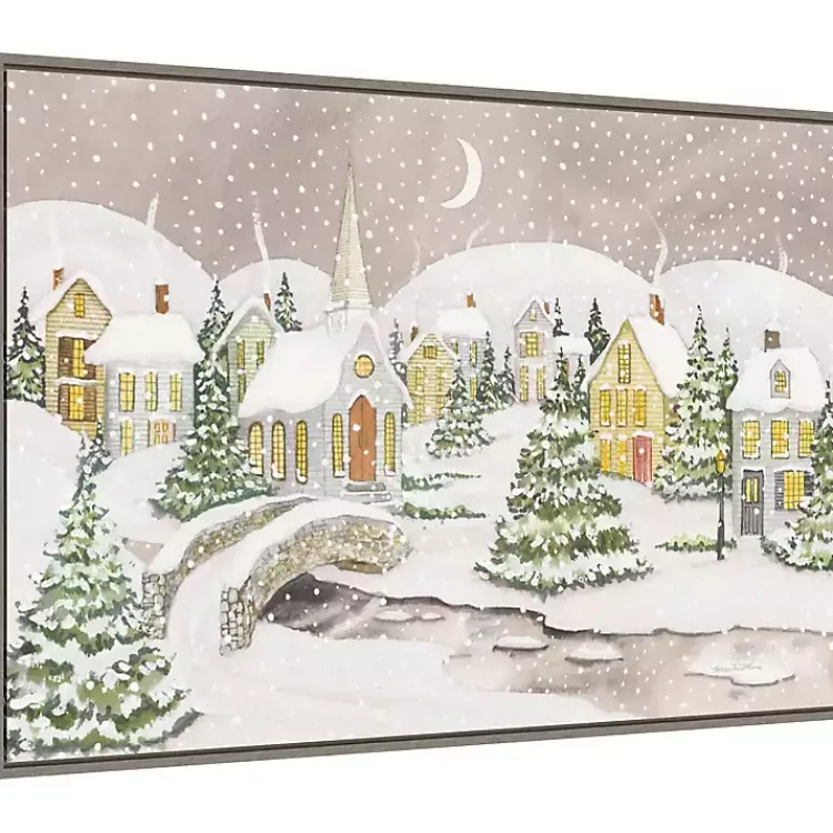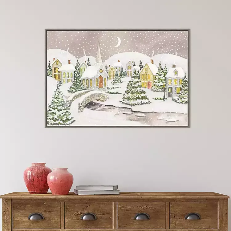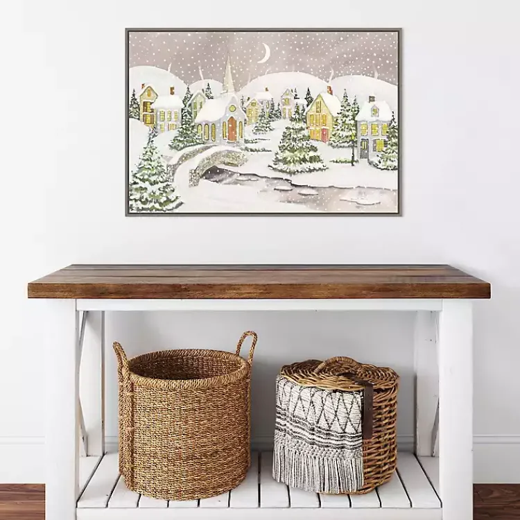With this Snowy Tree Scene Christmas Canvas Wall Plaque, your home will become part of the winter village! Hang it above a console, sofa, or mantel for a festive touch.